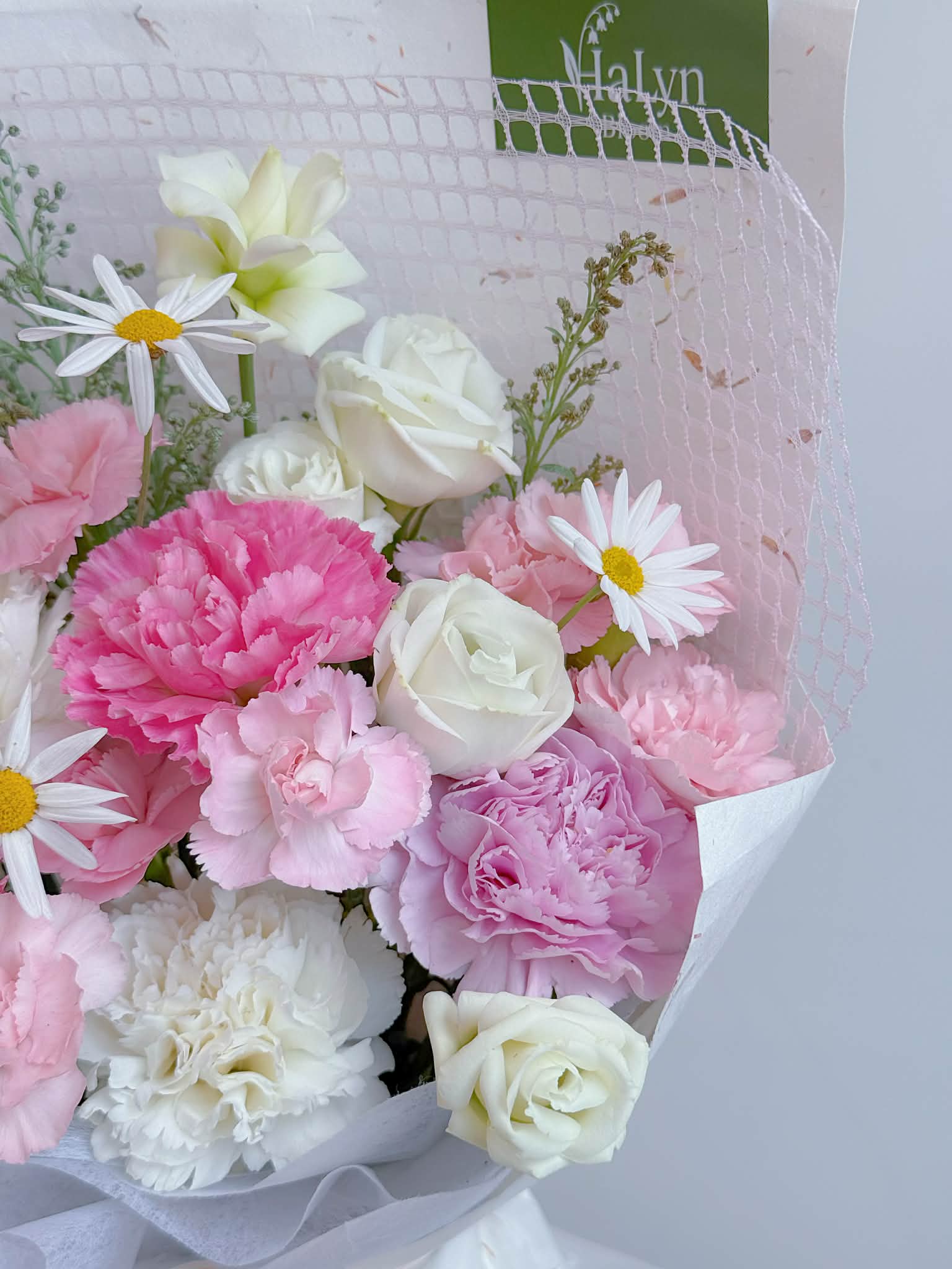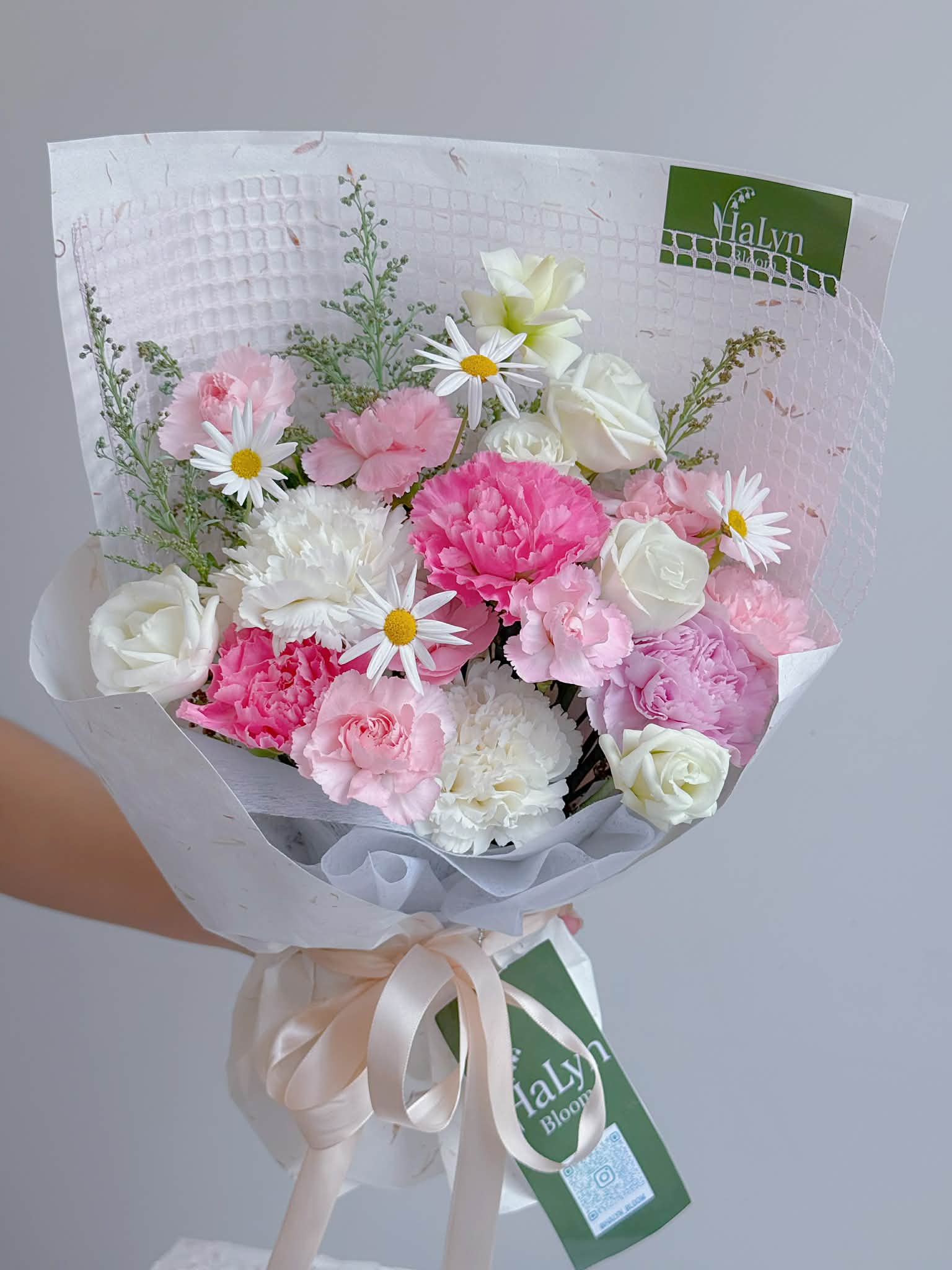 At Halyn Bloom, every creation is handcrafted with care and artistry, making each bouquet a unique expression of beauty. While our arrangements may slightly differ from the sample shown due to the natural charm of fresh blooms and handmade elements, their style and essence remain true.